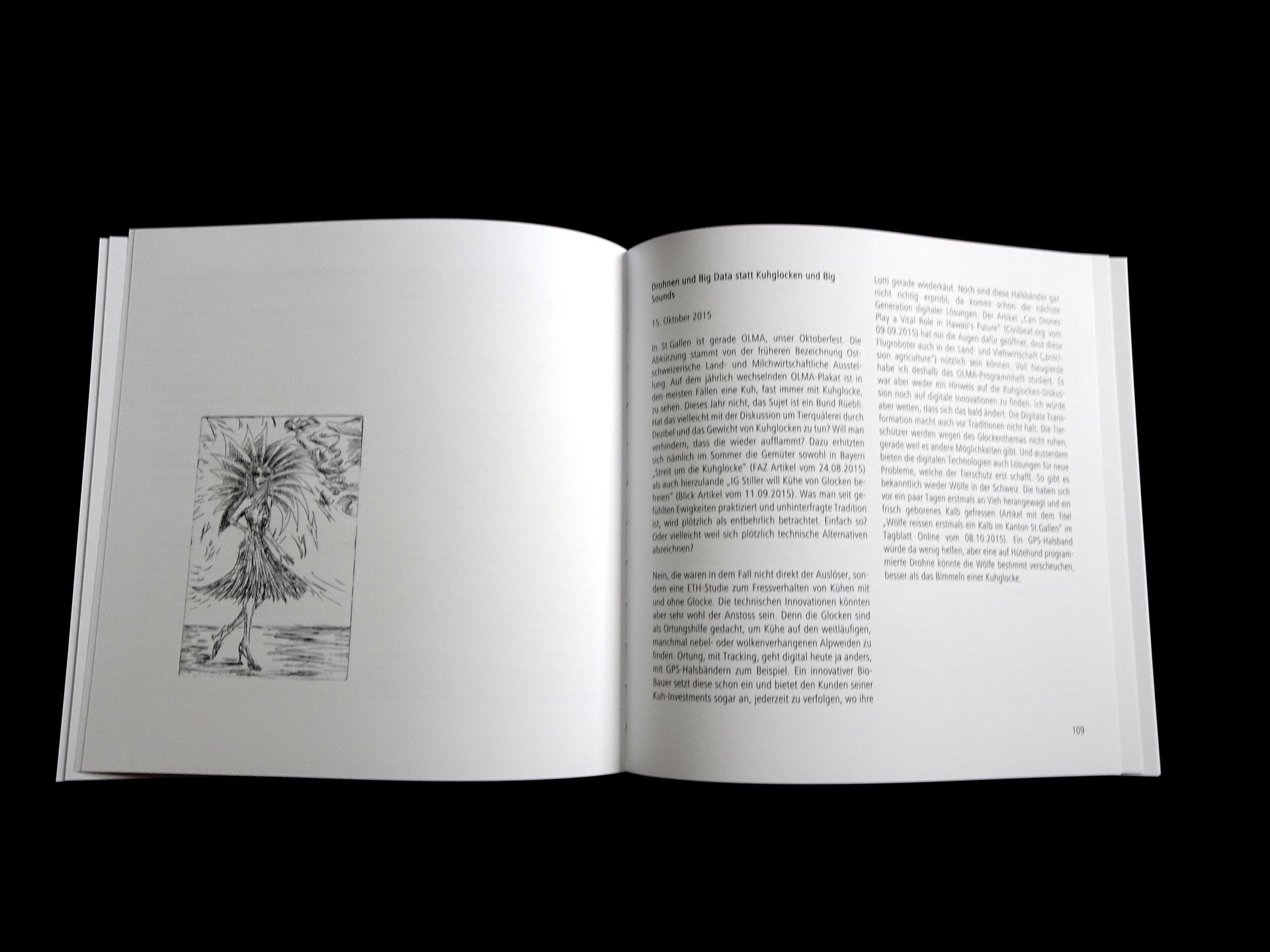 Illustriert habe ich das Werk mit meinen Radierungen in Form eines Polyptychons. Ebenso wie sich die einzelnen Kolumnen zum Ganzen zusammenfügen, ergeben acht Druckgraphiken ein Gesamtbild - oder eben verschiedene Mode-Looks eine Kollektion. Ausgewählte Themen übersetzte ich in experimentelle Outfits, welche im Leporello am Ende des Buches als Défilé über den gedruckten Catwalk schreiten.